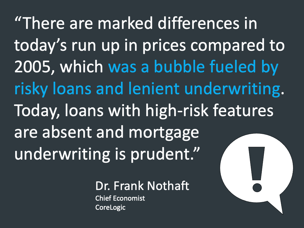 I’ve discussed whether or not we’re in a housing bubble a few months ago, but I know some people are still talking about this and do not understand the difference between today’s real estate market and what we saw in 2006. So, I’m addressing the question again this month and have the latest on what experts are saying about the current housing boom.