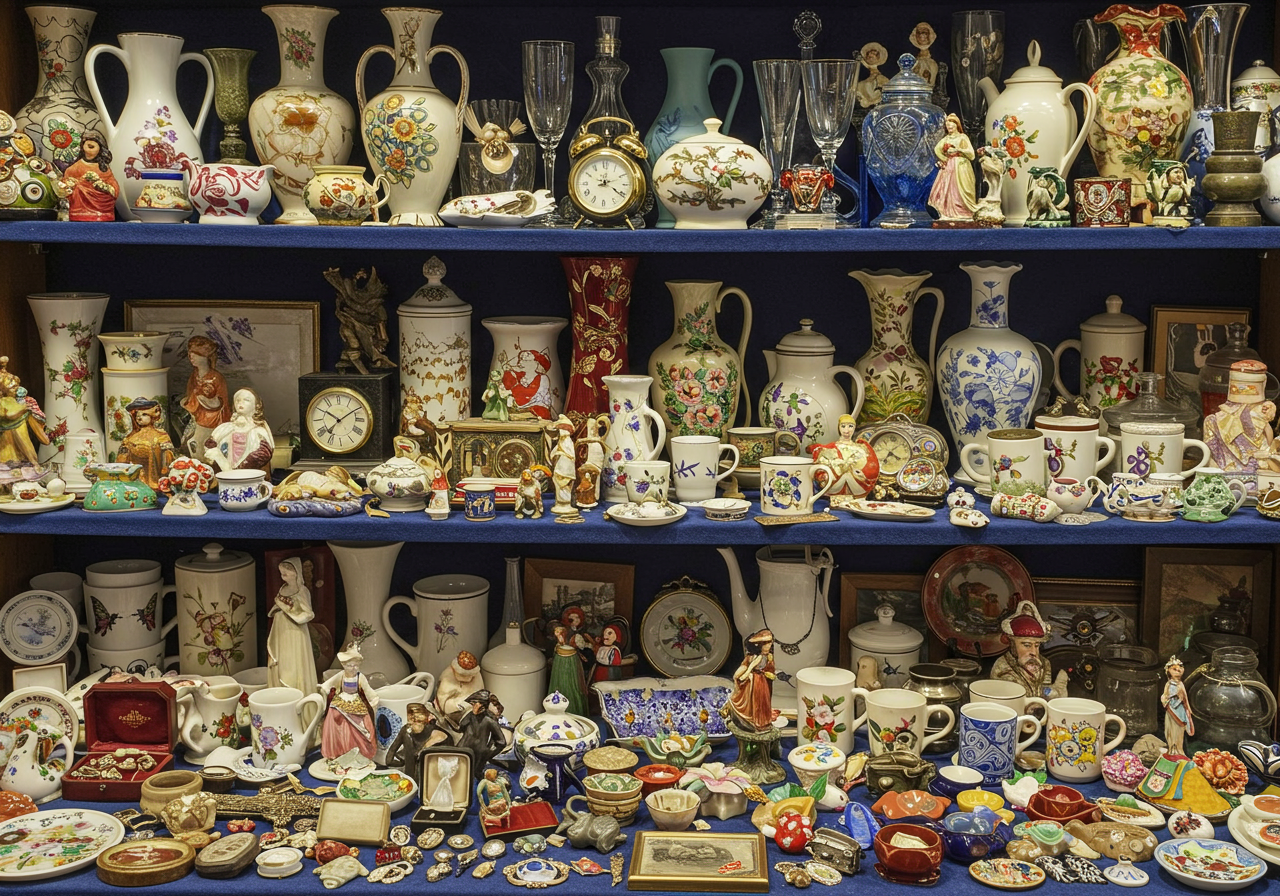 Second Treasures MV is a Martha's Vineyard vintage shop known for its diverse Gallery Collection, featuring antique collectibles, furniture, paintings, sculptures, porcelain and glass items, as well as silver, gold, and jewelry. This unique store offers a range of unique pieces, including a miniature MV Ag Fair Poster, Orthodox Icons, Robert Immelt's Martha’s Vineyard Artist Window, Ludwigsburg “Venus and Cupid” figurine, Victoria Carlsbad Austria Oyster Plates, and a Silver Tea Set, catering to collectors and those looking for distinctive additions to their collections.