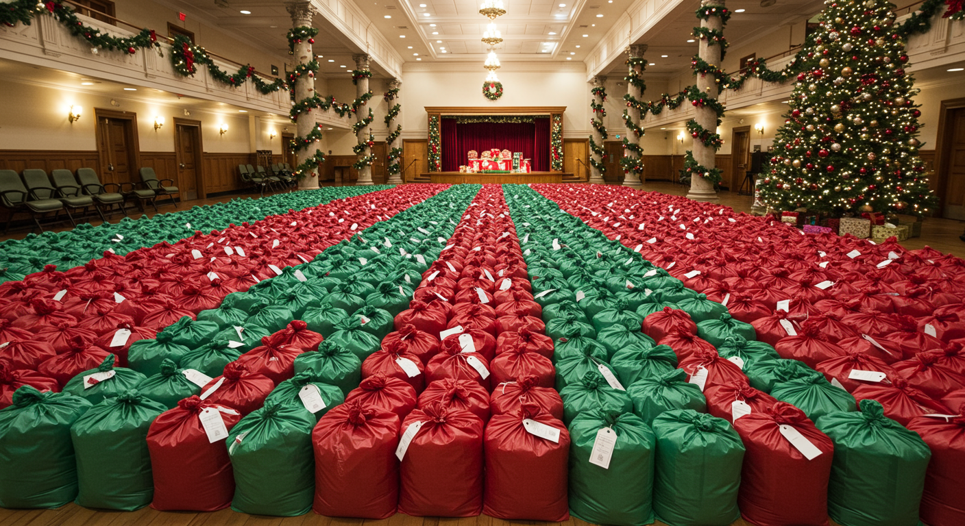 Red Stocking Gifts Ready to be Distributed